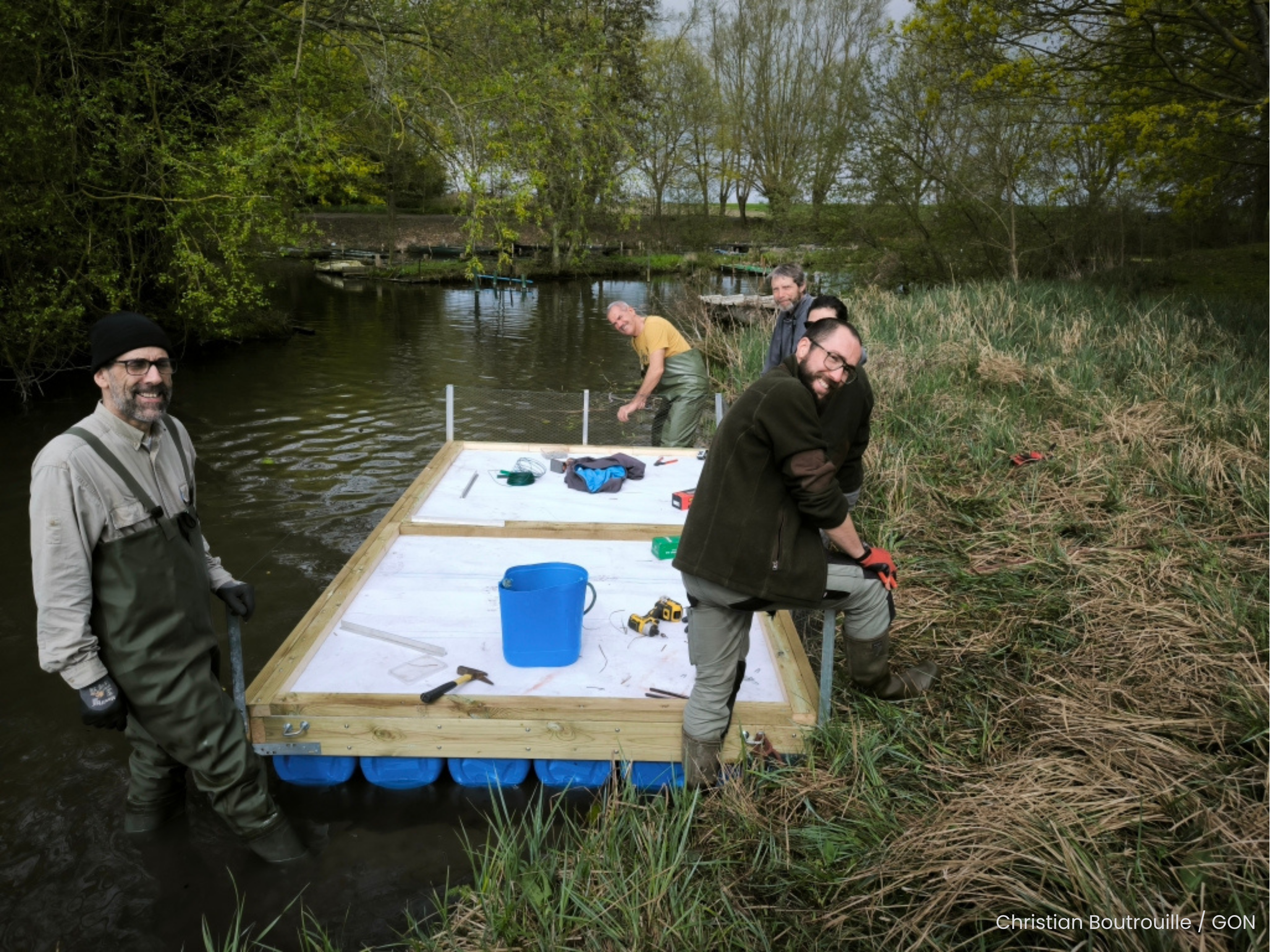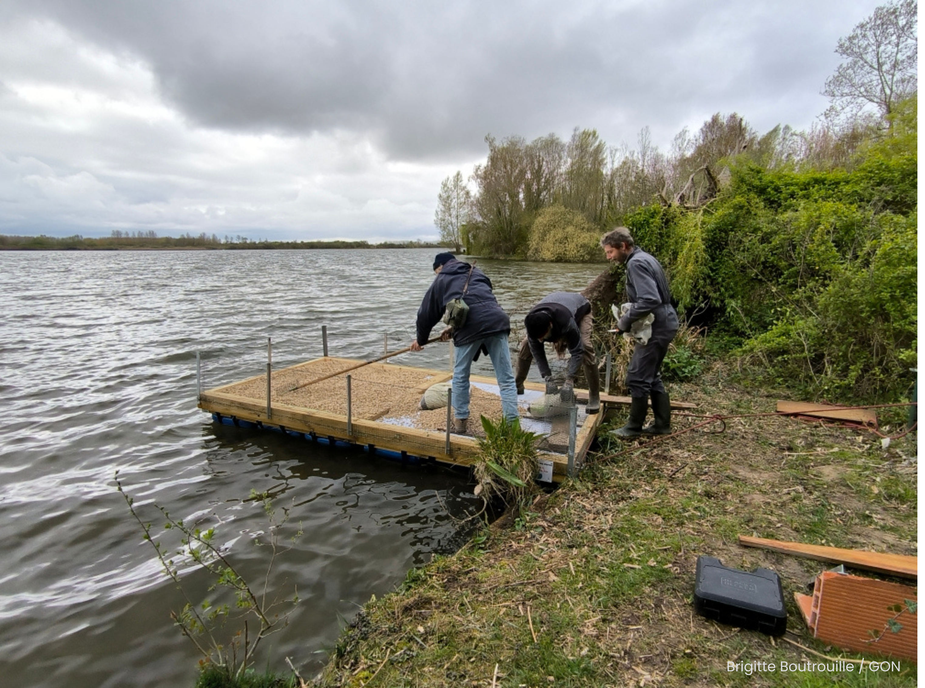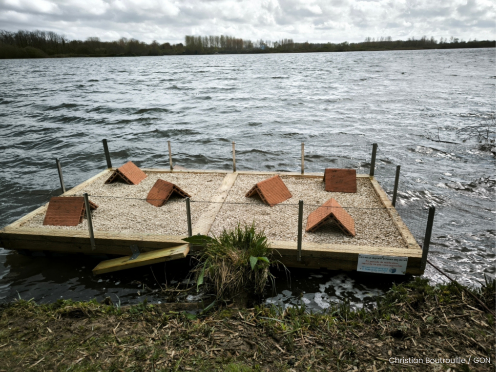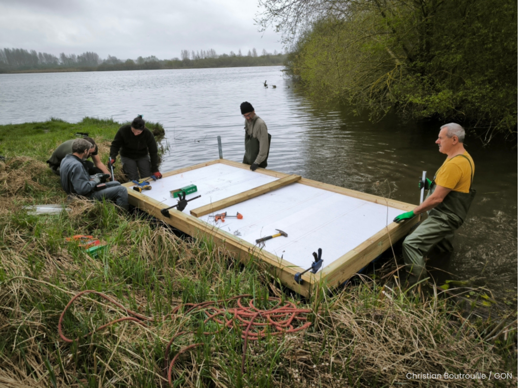 Samedi 4 avril, des bénévoles du GON ont inauguré un radeau flottant destiné à accueillir la Sterne pierregarin au marais d’Arleux (59).