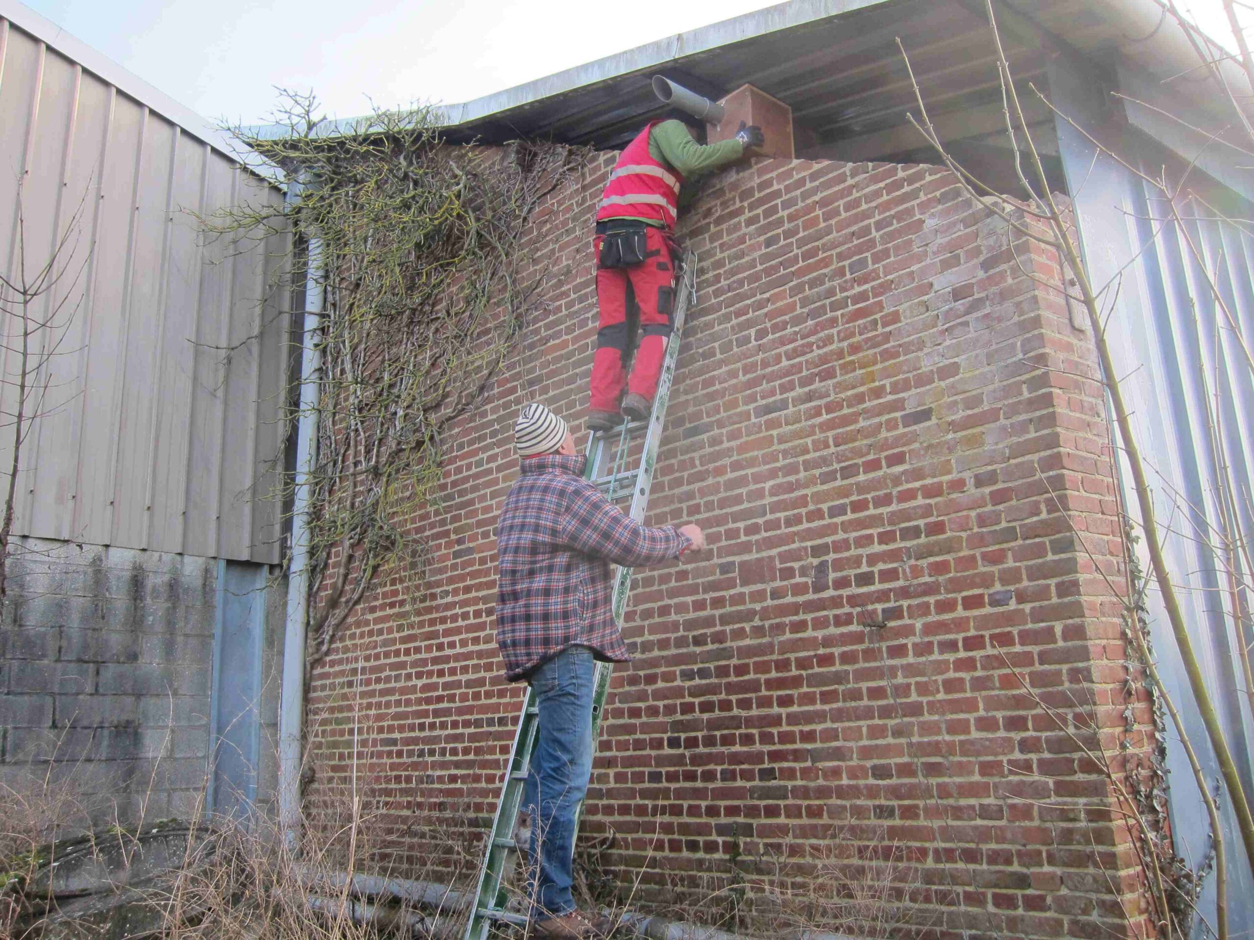 À Brunémont (59), trois nichoirs fabriqués par l’ESAT de la Gohelle ont été installés sur une exploitation agricole biologique :